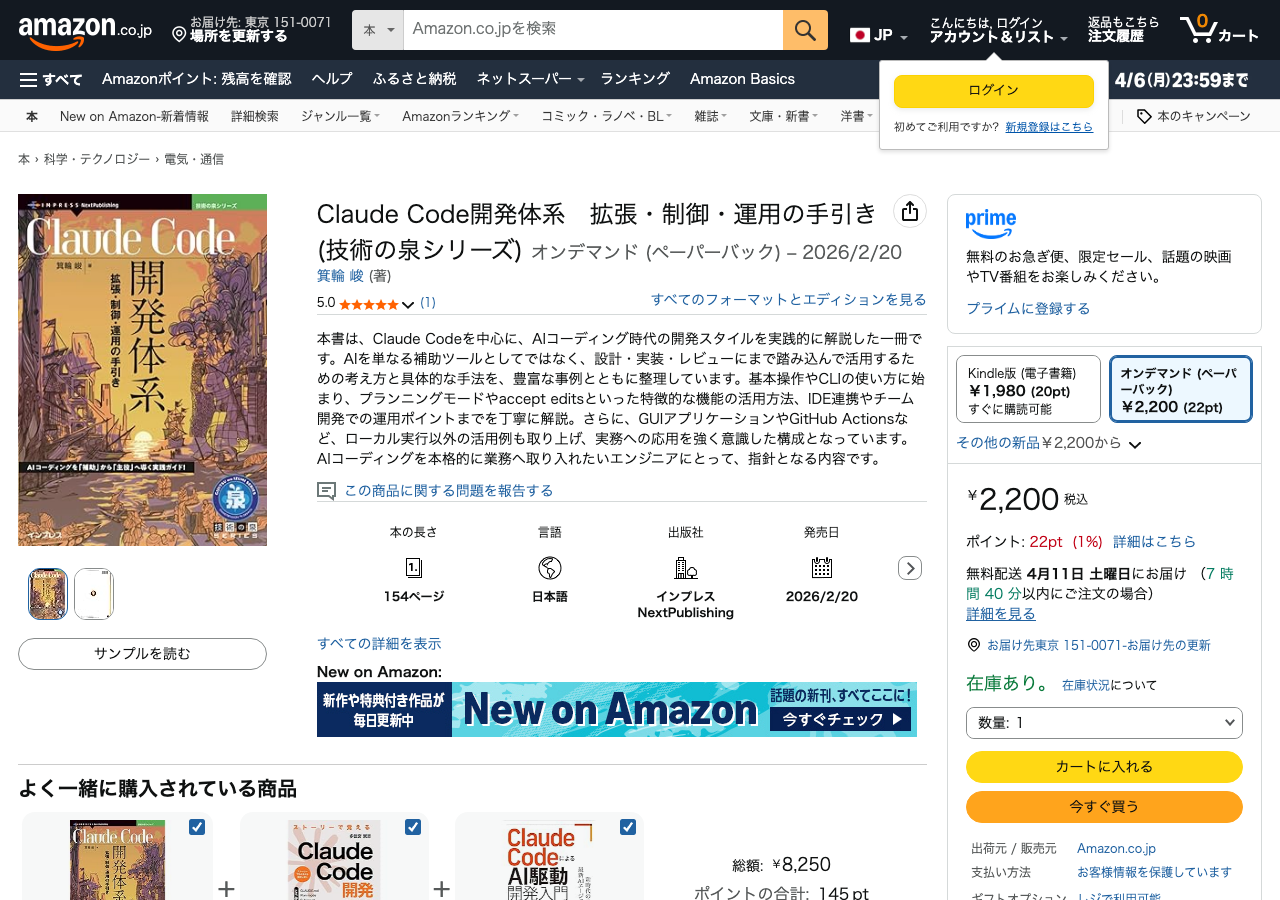 テキトー教師出版社側もClaude Code需要を相当見込んでいるということですよね。技術書の市場で「AI駆動開発」というカテゴリが明確に立ってきた証拠だと思います。