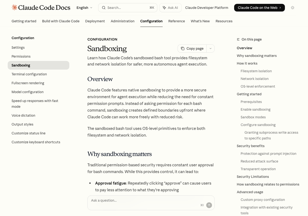 Claude Codeの機能の中で最もスルーされがちなのがサンドボックスだと思いますよ。