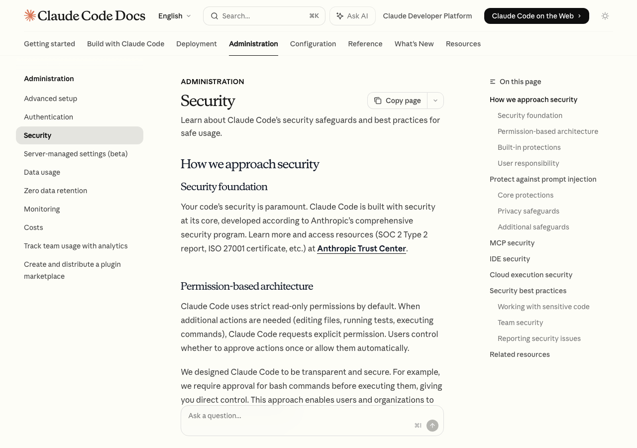 テキトー教師Anthropicが標準で組み込んでいる保護機能も押さえておきましょう。公式ドキュメントには複数の保護機能が列挙されています。