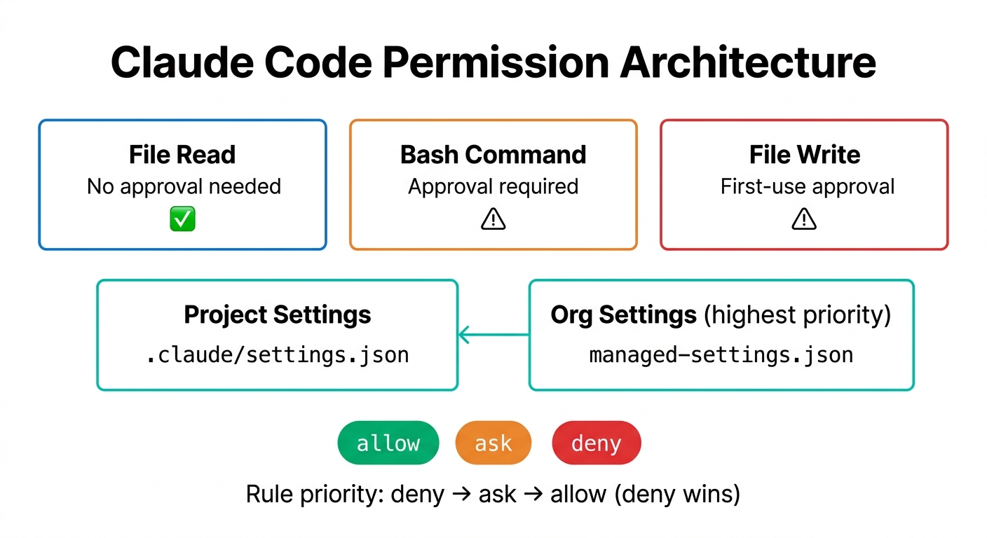 deny → ask → allow で、最初にマッチしたルールが適用されるんですよ。なのでdenyは絶対に上書きできない。