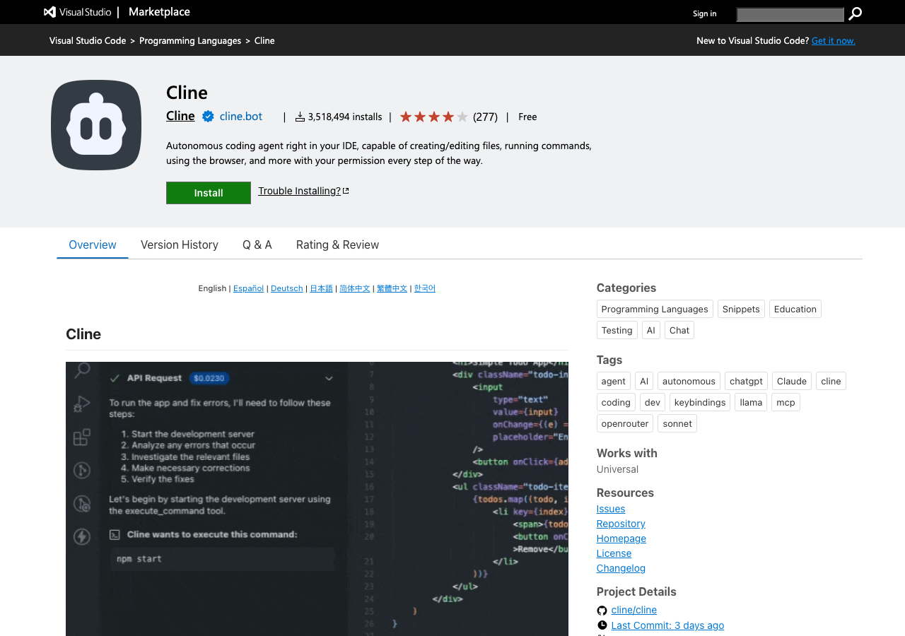 室谷まず前提として、2つのツールを整理しましょう。Clineは2024年にリリースされたオープンソースのVSCode拡張です。