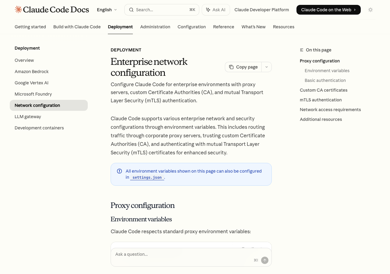 テキトー教師ここが便利で、Anthropic独自の設定ではなく、Linuxで一般的に使われている標準仕様なんですよね。既存のプロキシ設定がある環境なら、追加の設定をほとんどしなくていいケースも多いです。