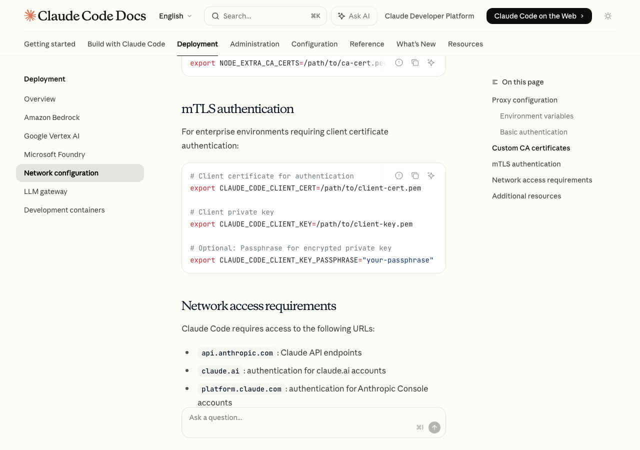 | mTLS認証が必要 | CLAUDE_CODE_CLIENT_CERT、CLAUDE_CODE_CLIENT_KEY |