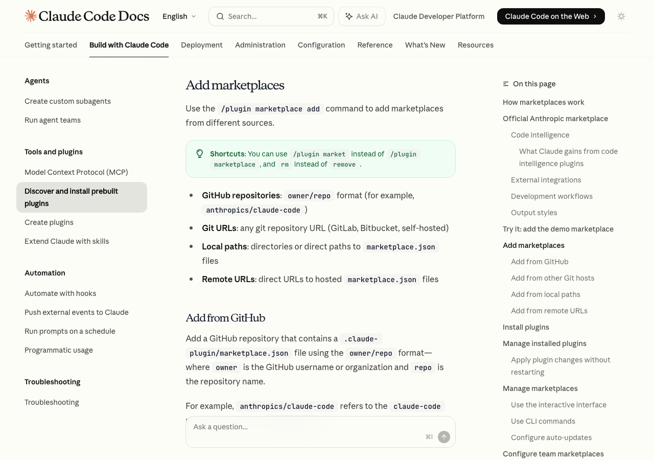 | GitLab(HTTPS) | /plugin marketplace add https://gitlab.com/company/plugins.git |