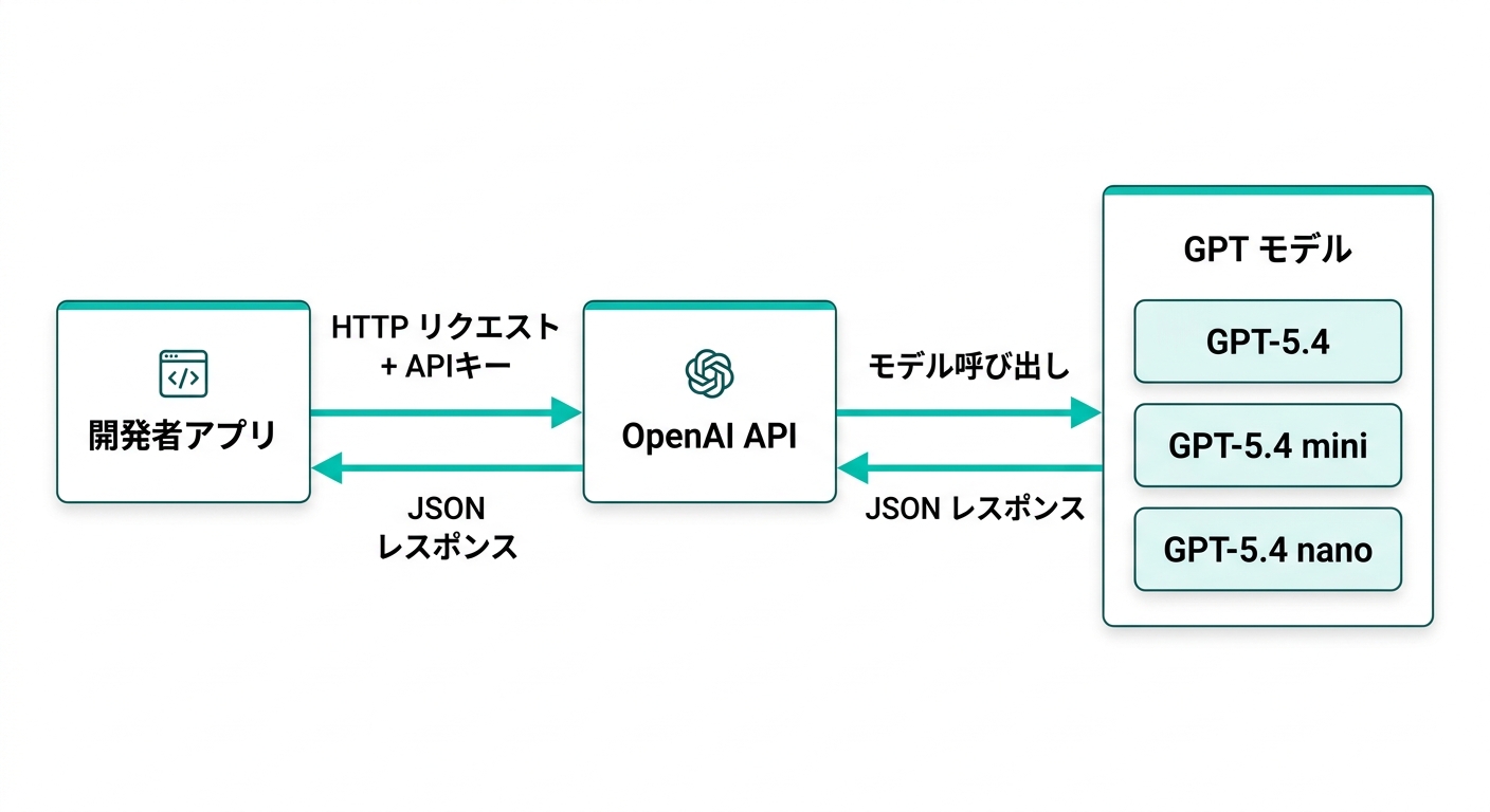 gpt-4oやgpt-5.4といったモデルをAPIで呼び出して、自分のプログラムからテキスト生成ができます。