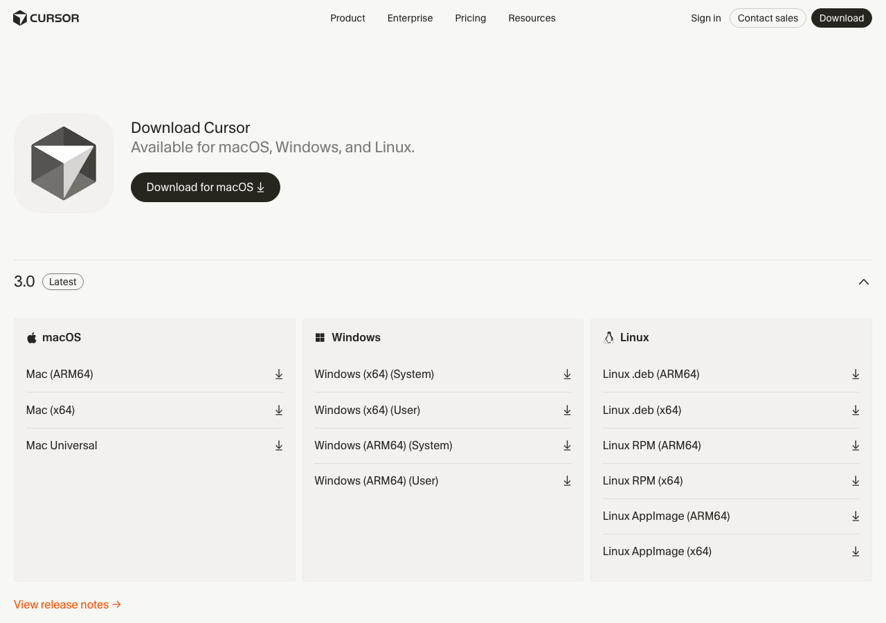 brew install --cask cursor) - Windows: x64 Userインストーラーが個人PCには基本。WinGetも使える(