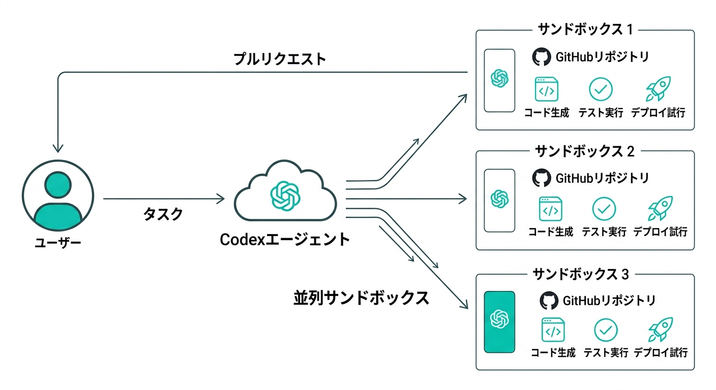 テキトー教師そこをやっておくと、コードベース全体を把握した状態でタスクを処理してくれます。タスクは独立した環境(サンドボックス)で実行されるので、本番の開発環境には直接影響しない。