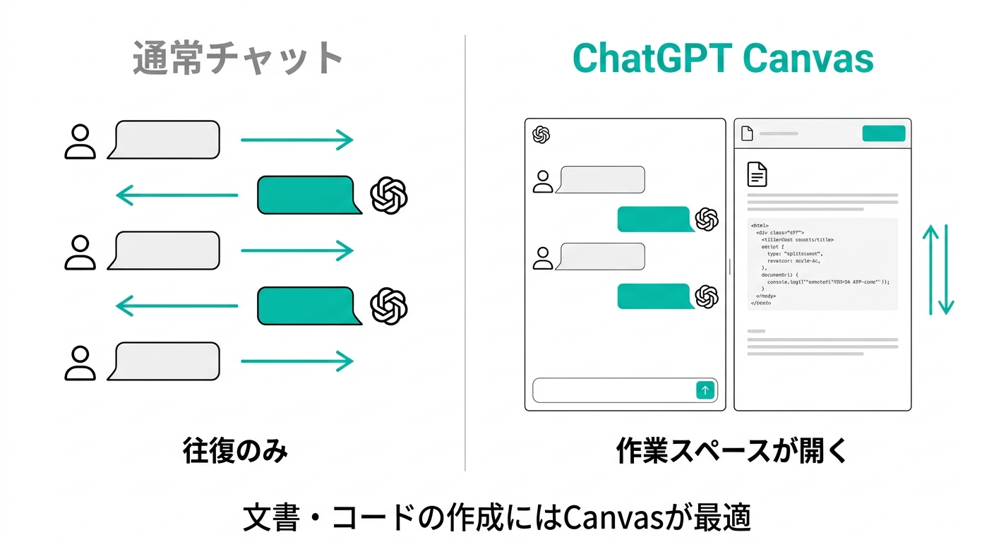 - ChatGPT Canvasとは何か、普通のチャットとどう違うのか