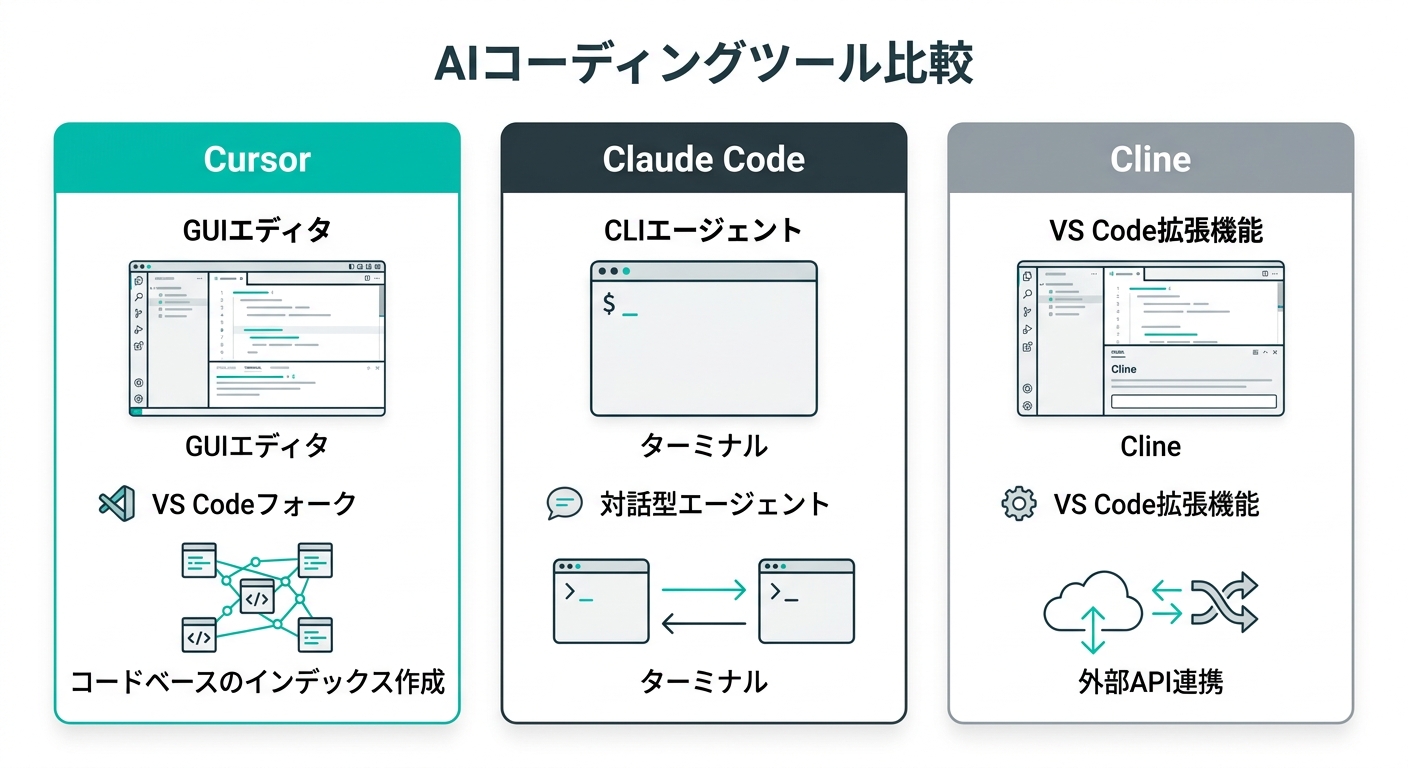 最初はCursorをおすすめします。GUIで使いやすく、VS Codeから移行がスムーズです。慣れてきたらClaude Code(CLIベース)と組み合わせて使うと生産性がさらに上がります。