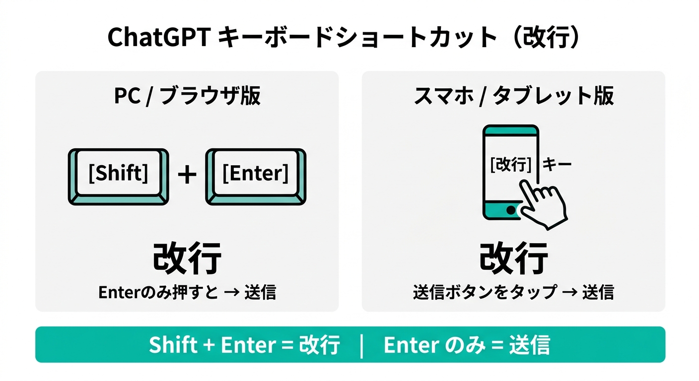 ChatGPTの改行方法を完全解説【2026年最新】:Windows・Mac・スマホ別キーショートカットから誤送信防止・拡張機能まで