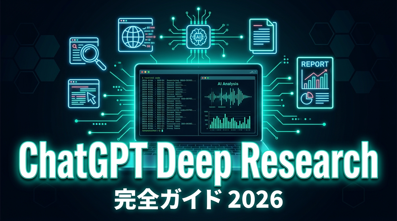 - Deep ResearchはChatGPTに搭載されたAIリサーチエージェント。5〜30分かけてWebを自律的に調査し、構造化レポートを生成する