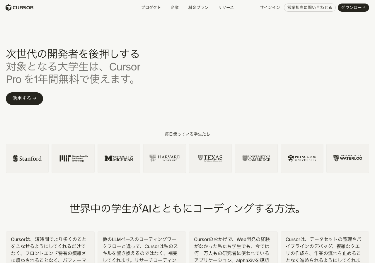 - Cursor学生ページにアクセスする