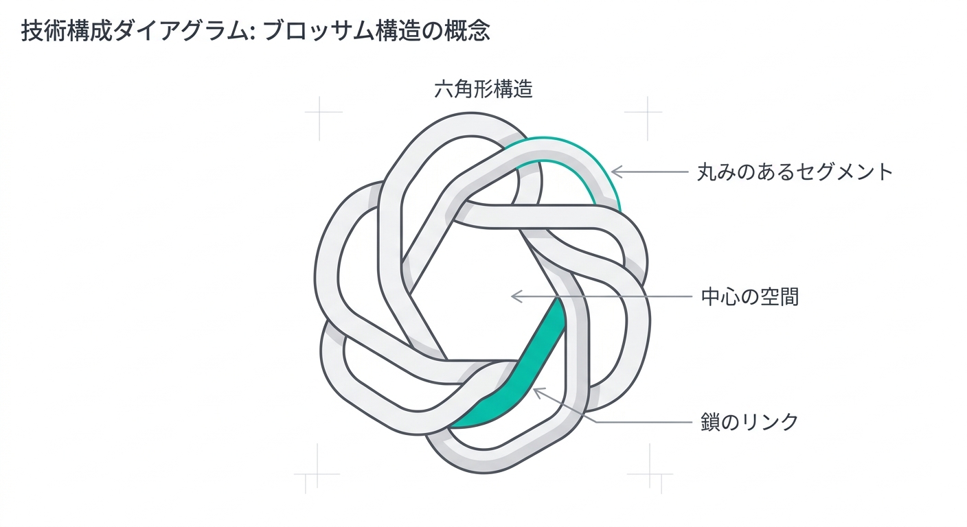 テキトー教師ですね。Blossomという名前、人間とテクノロジーの融合というコンセプト、六角形と渦巻きの構造・・・シンプルに見えてめちゃくちゃ考えられてる。