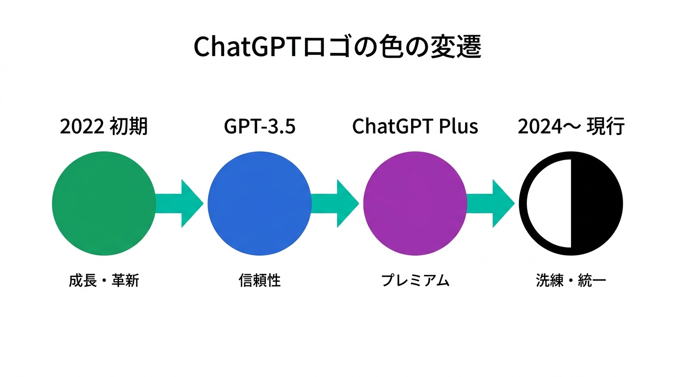 室谷ChatGPTのロゴの歴史を整理していきましょう。実はこのロゴ、2022年11月のChatGPT公開時から基本デザインは変わってないんですよ。