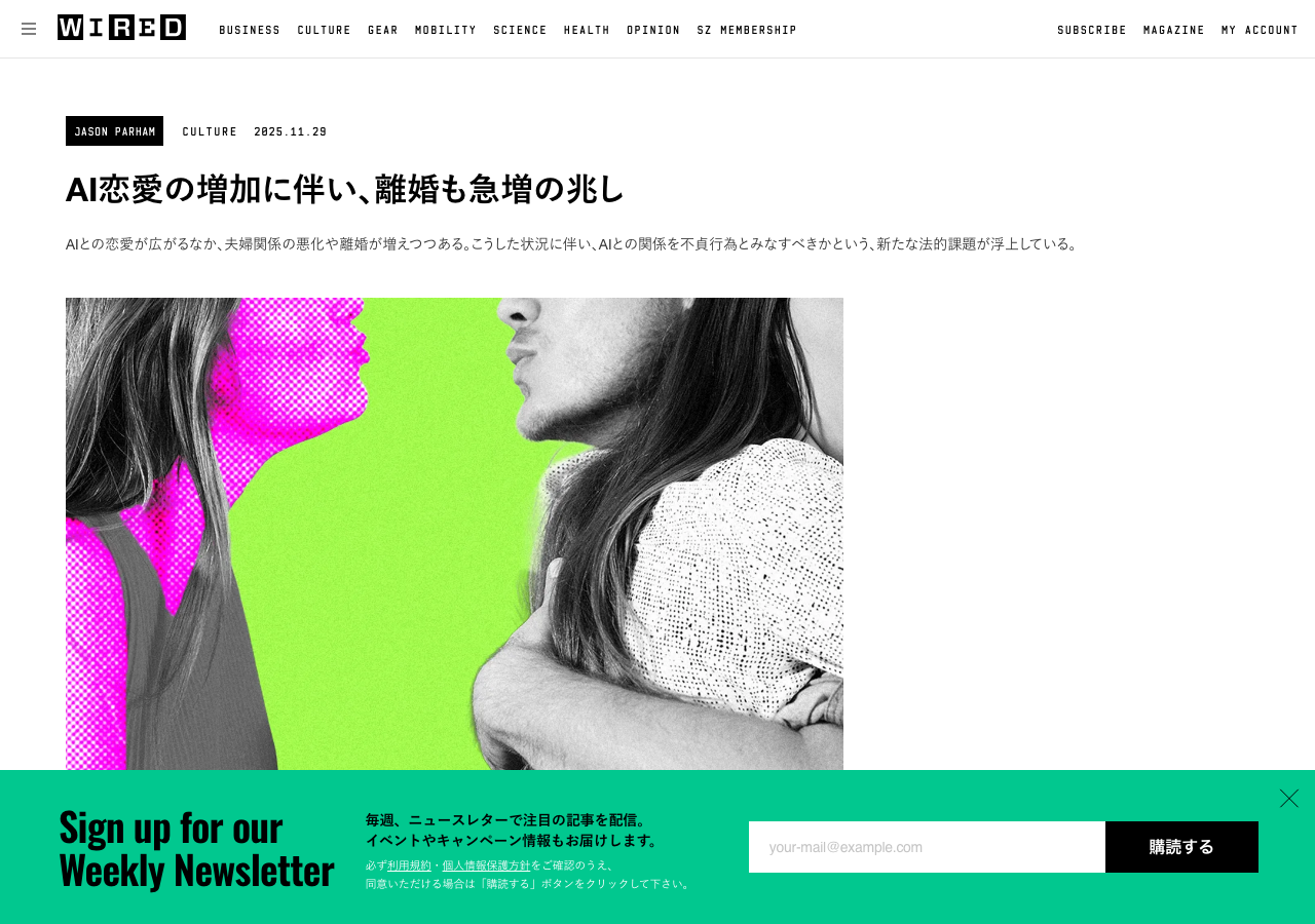 室谷一方で、海外ではAI恋愛が既存の夫婦関係を破壊するケースが急増してます。WIREDの報道によると、Redditには「14年間の結婚生活が終わった。