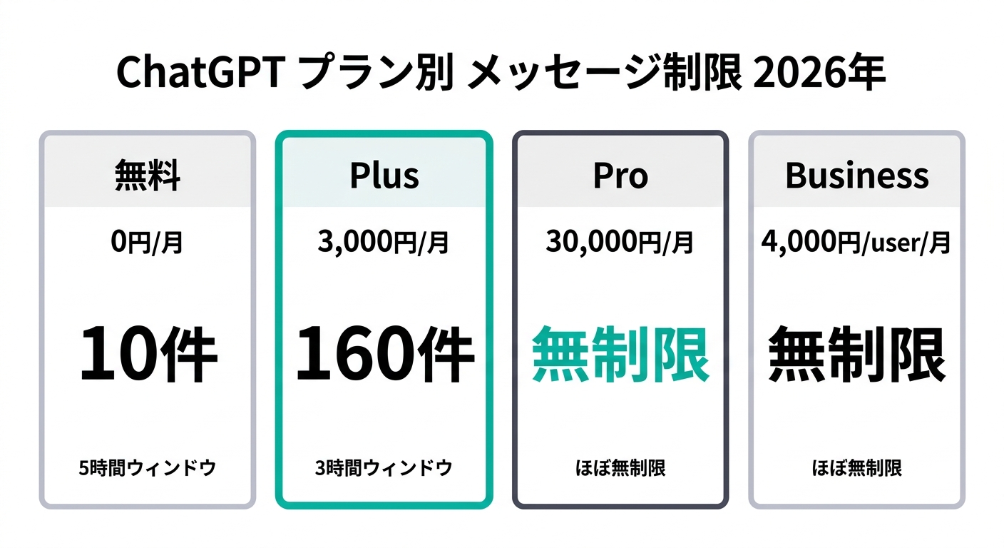 テキトー教師「chatgpt 上限 無料」でも検索されているように、無料プランの制限について詳しく知りたい人も多い。2026年時点では、無料プランにも多くの機能が解放されています。
