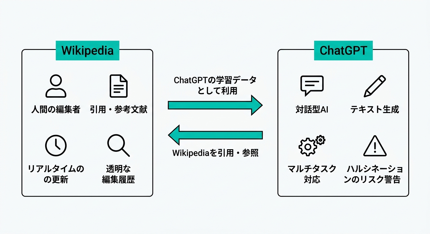 | 観点 | ChatGPT | Wikipedia |