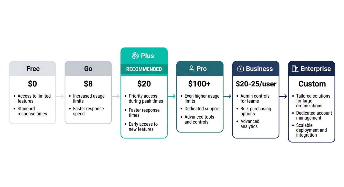 | ChatGPT | Free ($0) + Go ($8) | Plus ($20) | Pro ($100〜) |