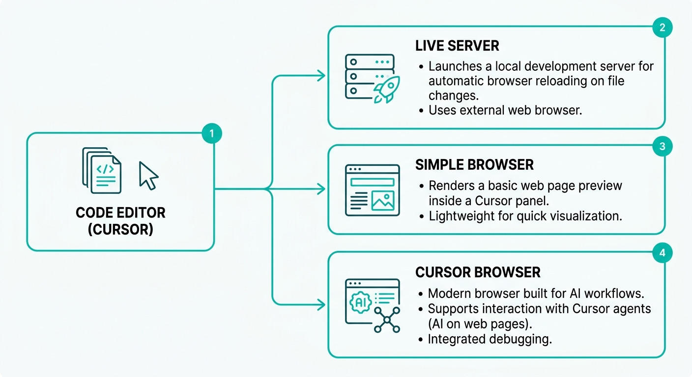 テキトー教師整理すると、CursorでHTMLをプレビューする方法は大きく3つあります。