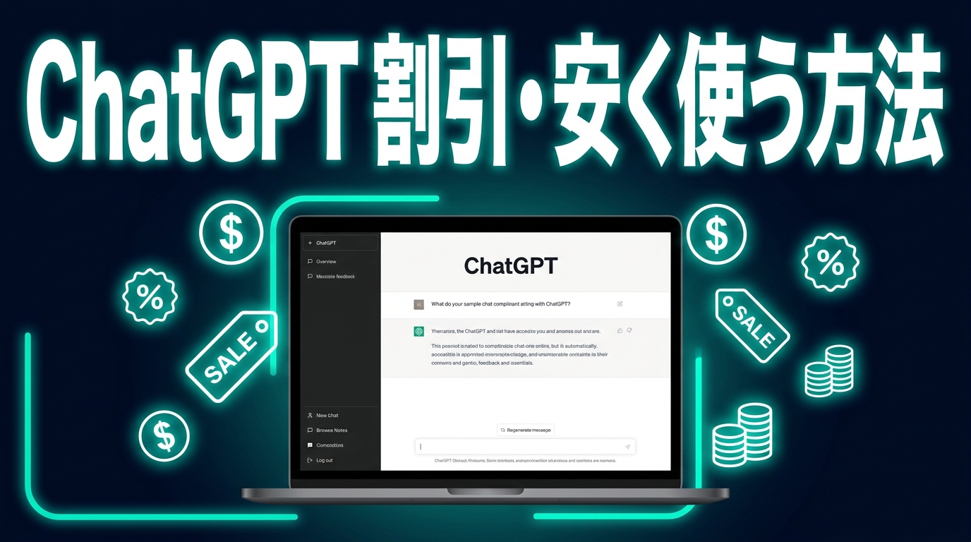 室谷結論から言うと、ChatGPTには公式のクーポンコードや常設の割引制度はないんですよ。でも、実は安く使う方法がいくつかあって、知ってるかどうかで月額の負担がかなり変わります。