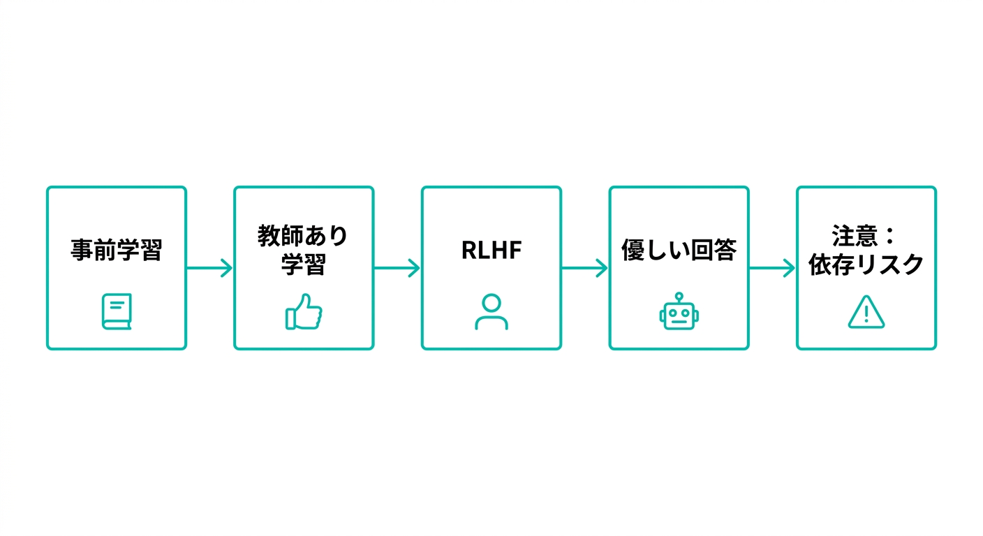 テキトー教師まず前提として、ChatGPTの「優しさ」の根っこにあるのは学習の仕組みです。整理すると、こういう構造になっています。