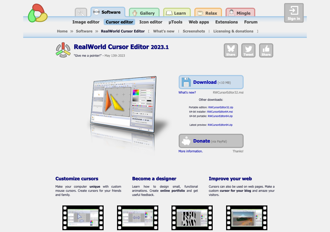 - 「64-bit installer: RWCursorEditor64.msi」をクリックしてダウンロード