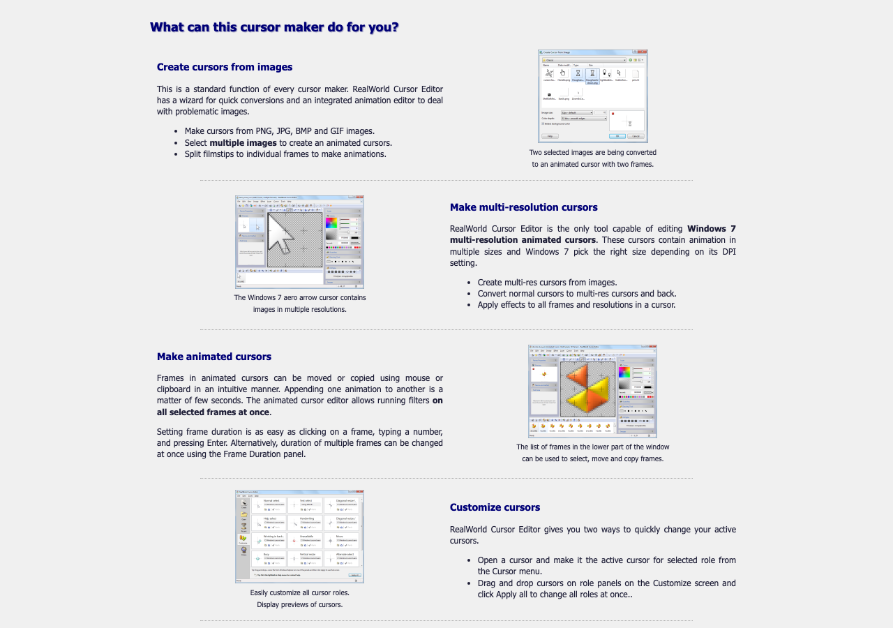 テキトー教師講座でよく出る質問に「GIFからカーソルって作れますか?」というのがあるんですが、RealWorld Cursor Editorならフィルムストリップを個別フレームに分割してアニメーションを作れます。GIFアニメをカーソルにしたい場合も対応できますね。