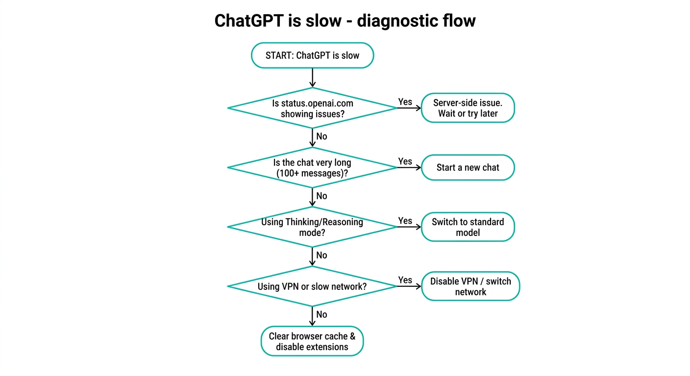 - ChatGPTが遅い原因は「サーバー混雑」「長いチャット」「モデルの違い」「ブラウザ/デバイス」「ネットワーク」の5つ