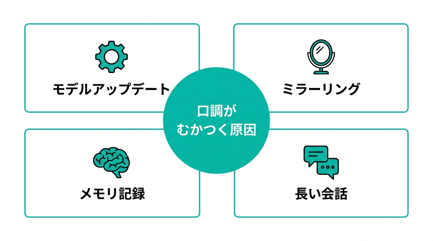 カスタム指示で口調を固定するのが一番確実な対策です。