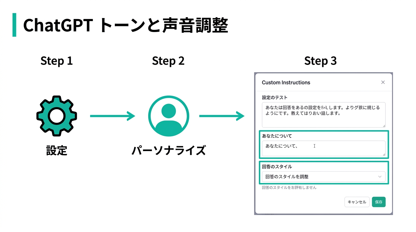 室谷原因がわかったところで、具体的な対処法にいきましょう。ChatGPTの口調がむかつくとき、すぐできる設定変更があるんですよ。