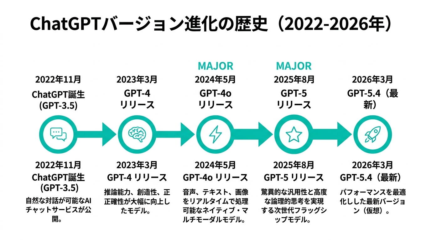 ChatGPTのリリース履歴完全まとめ【2026年最新】:各バージョンのリリース日・機能変遷を徹底解説