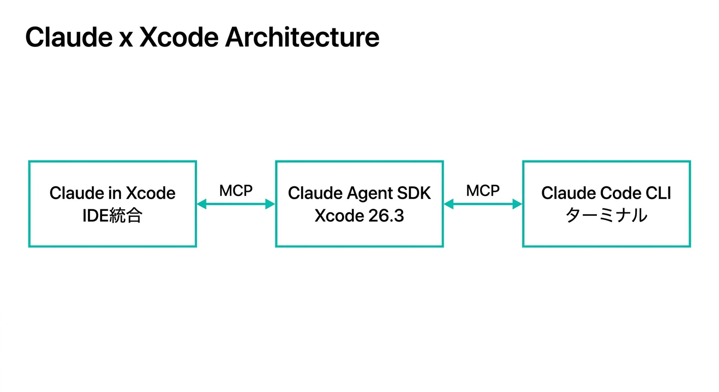 実はXcode 26.3のエージェントコーディングはXcodeだけで完結します。Claude Code CLIは別物です。