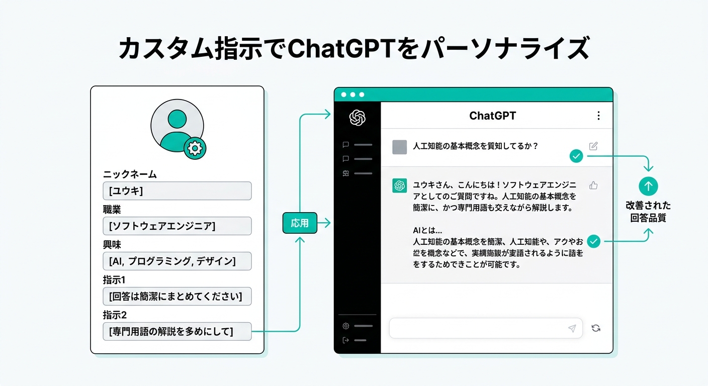 | カスタム指示 | 職業・呼び名・口調・前提知識の固定 | 設定 → パーソナライズ |