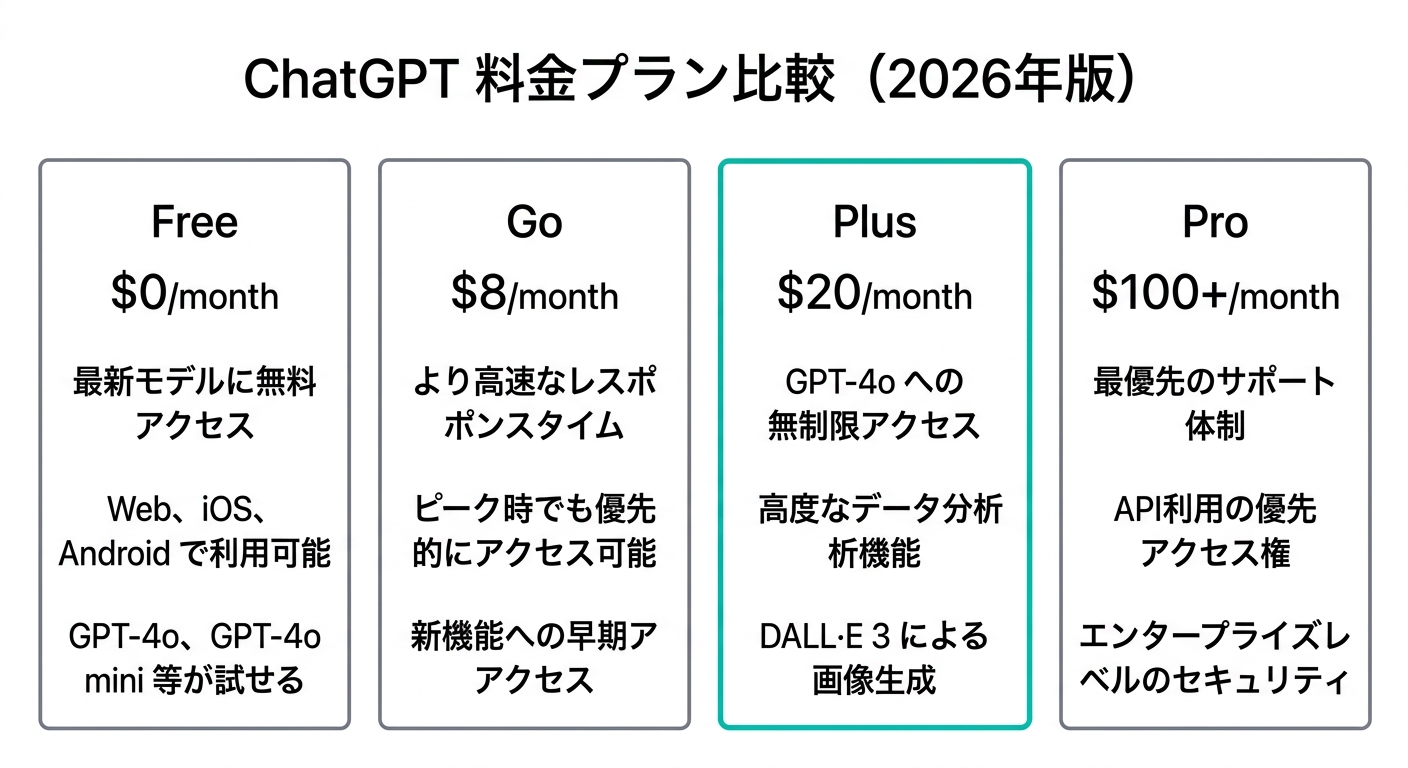 | Plus | $20 | 高度な推論モデル、画像生成拡大 |