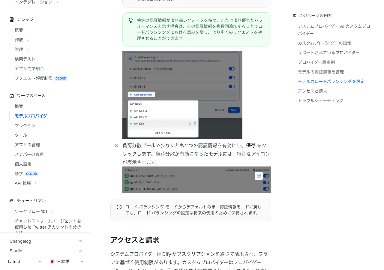 室谷少し発展的な話になりますが、Difyにはモデルのロードバランシングという機能があります。複数のAPIキーにリクエストを分散させることで、レート制限を回避しながら安定稼働させる仕組みです。