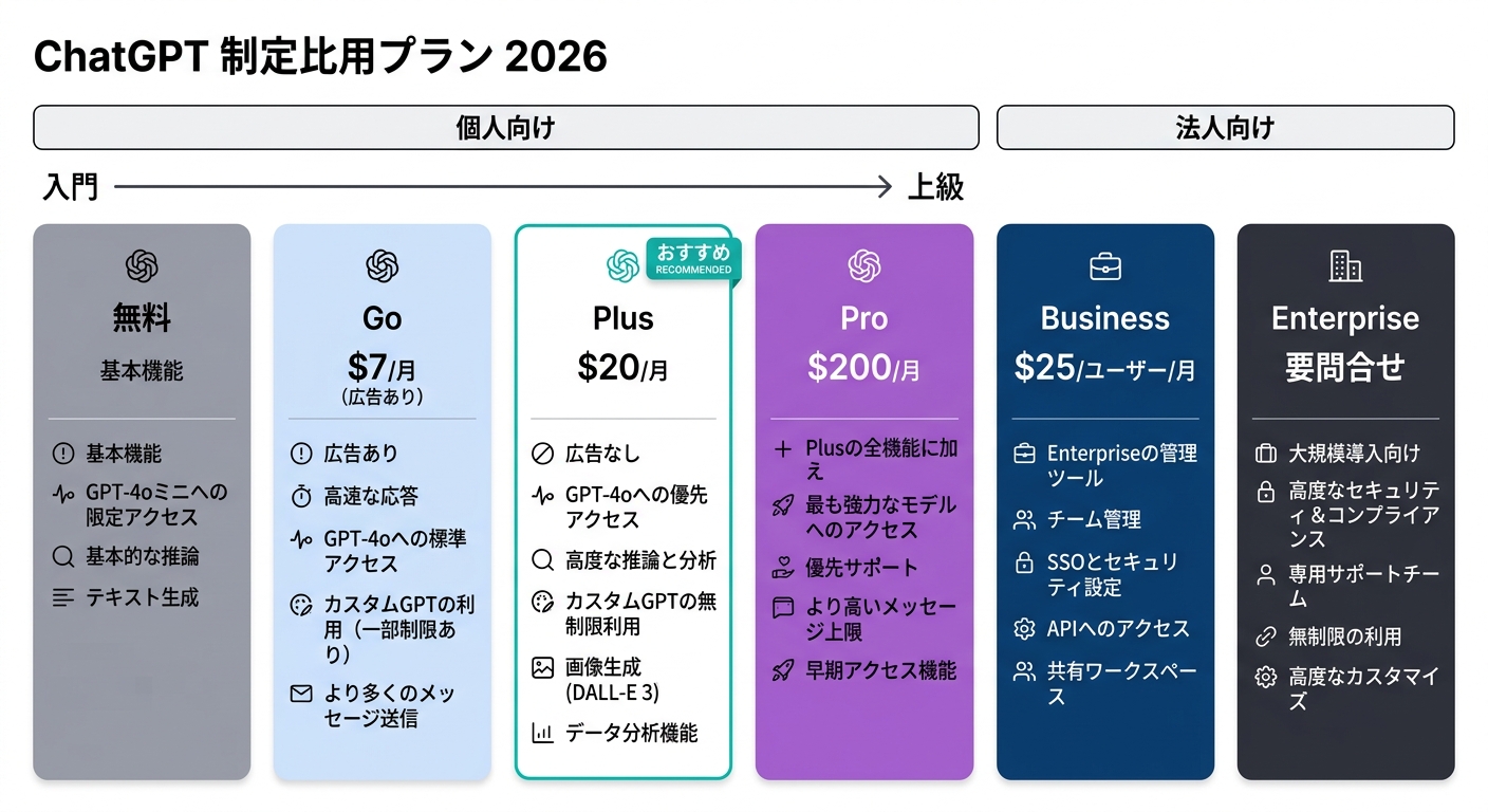ChatGPTの料金【2026年最新】:OpenAIの全プランをFreeからEnterpriseまで徹底解説