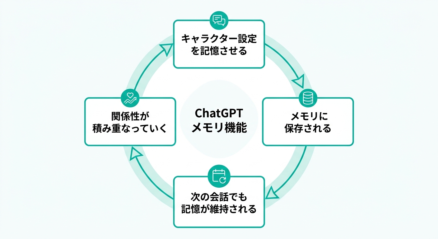 - メモリ活用型: ChatGPTのメモリ機能で「私の彼氏は〇〇という名前で〜」と記憶させ、長期間関係を継続する