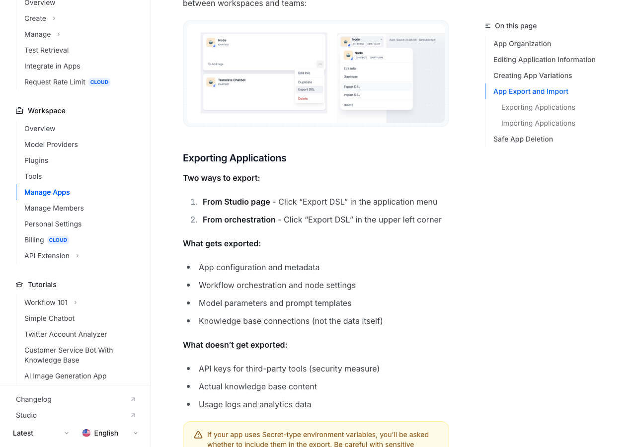 - Dify公式ドキュメント: App Management (DSL export/import)