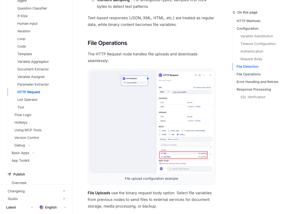 室谷これ、使いこなせるかどうかでDifyでできることが一気に広がるんですよね。HTTPリクエストノードはファイルレスポンスを自動検出してくれます。