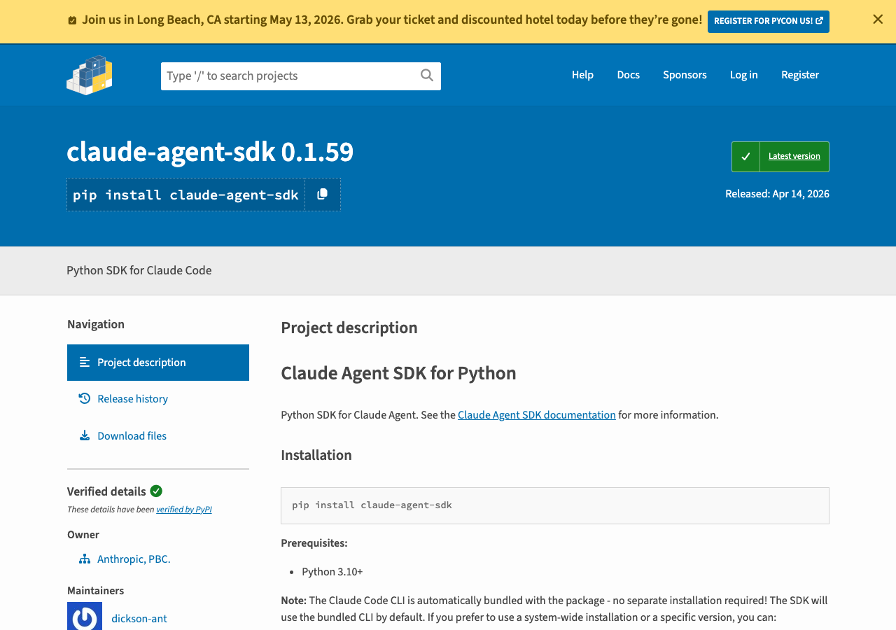 室谷Python 3.10以上が必要です。2026年4月時点の最新版はv0.1.59で、PyPI上でAnthropicの公式パッケージとして公開されています()。