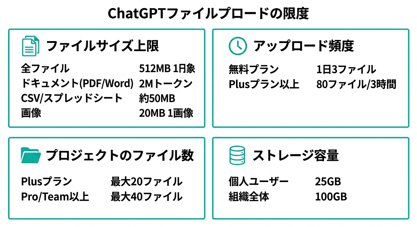 ChatGPTのファイル上限を完全解説【2026年最新】:容量・ファイル数・プラン別の制限と削除方法まで