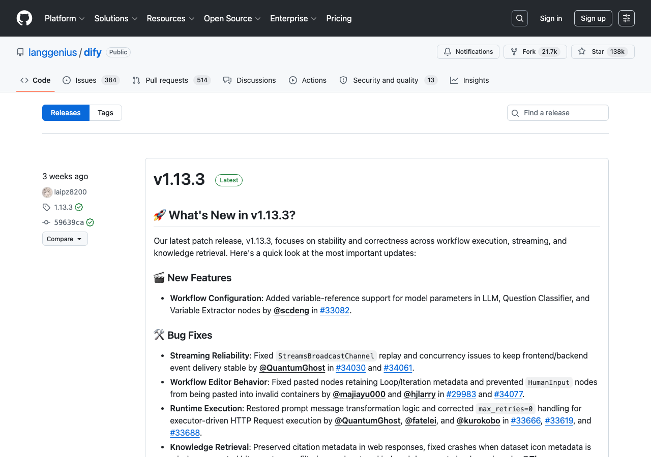 室谷まずリリースノートの場所から確認しましょう。Difyは主に2か所で公開しています。