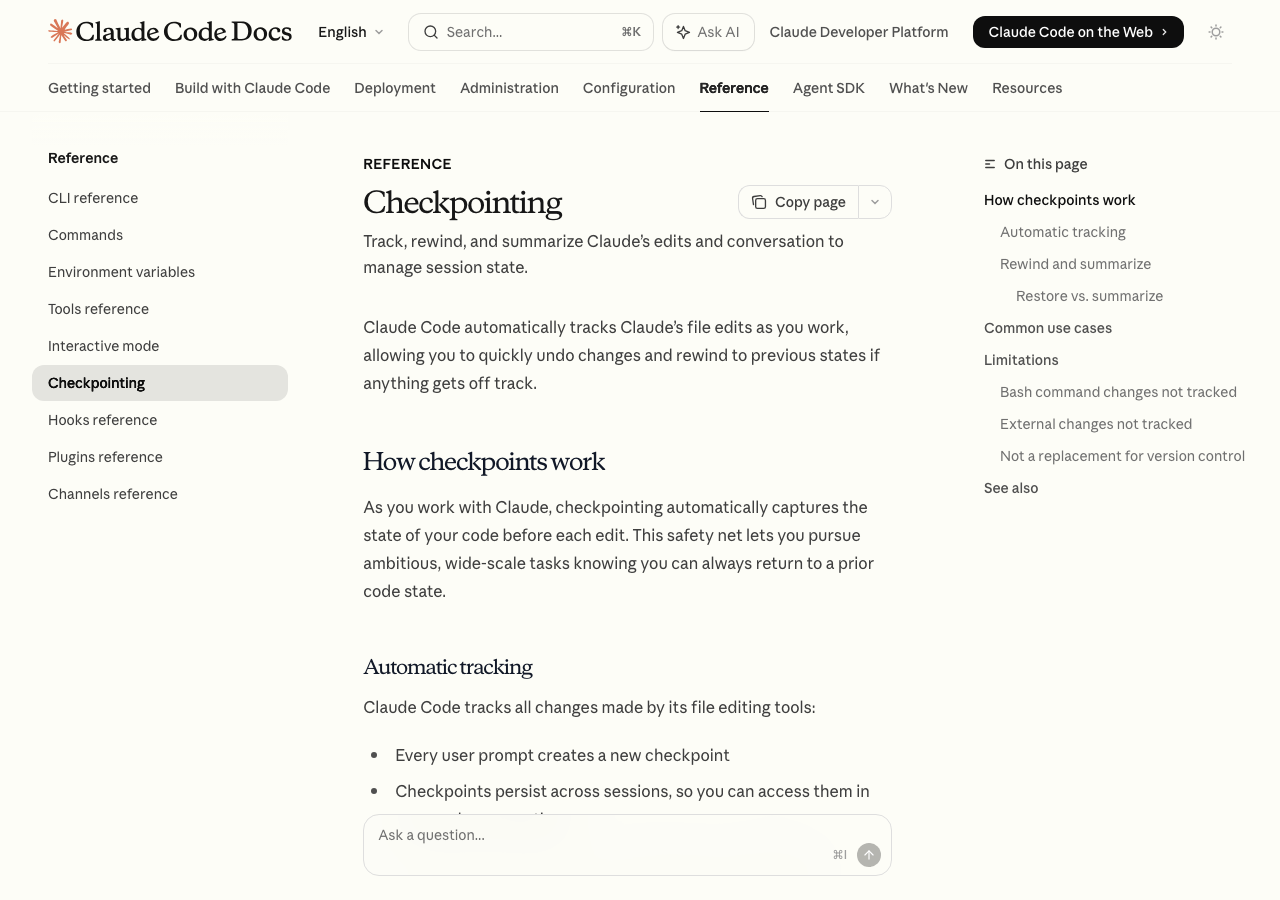 室谷Claude Codeはどんどんアップデートされていて、変更管理まわりの機能も進化し続けています。公式ドキュメントのCheckpointingページをブックマークしておくと、最新情報を追いやすいですよ。