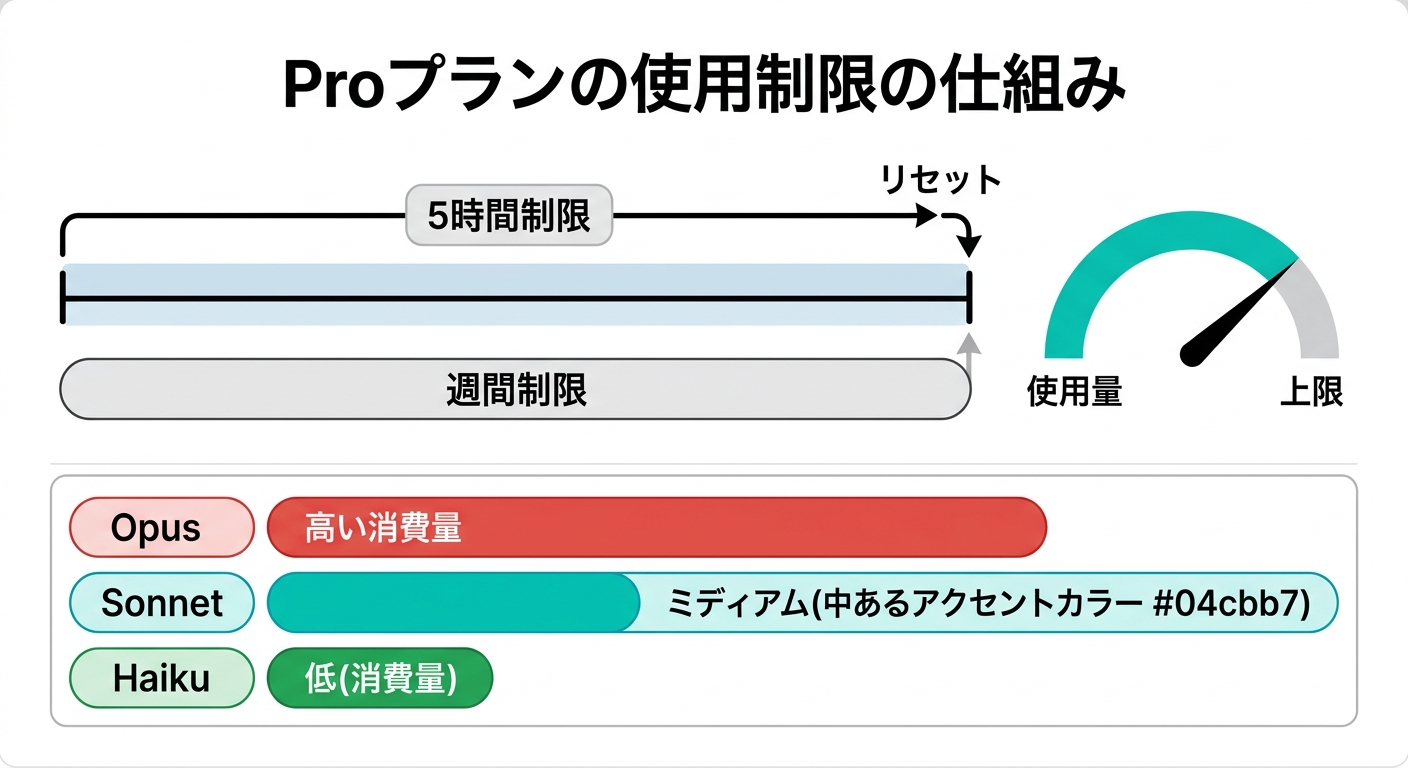 Proプランの使用制限:5時間制限と週間制限を理解する