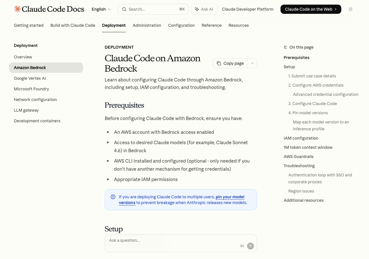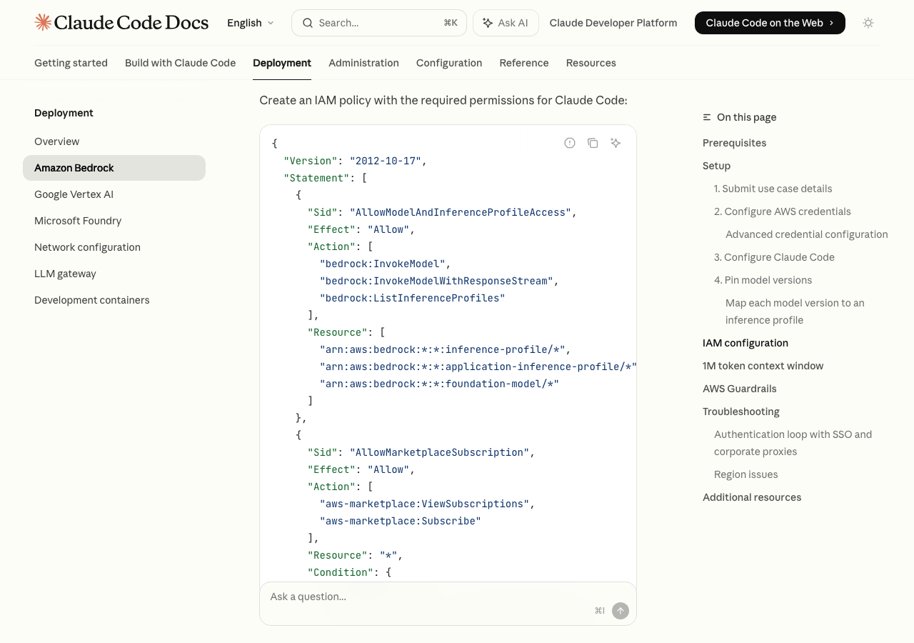 | 認証 | Anthropicアカウント | AWSアカウント(IAM) |