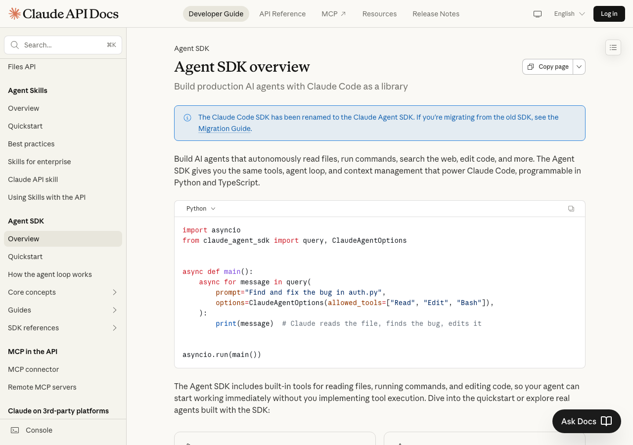 - Claude Code SDKはClaude Agent SDKに改名されました。パッケージ名は
