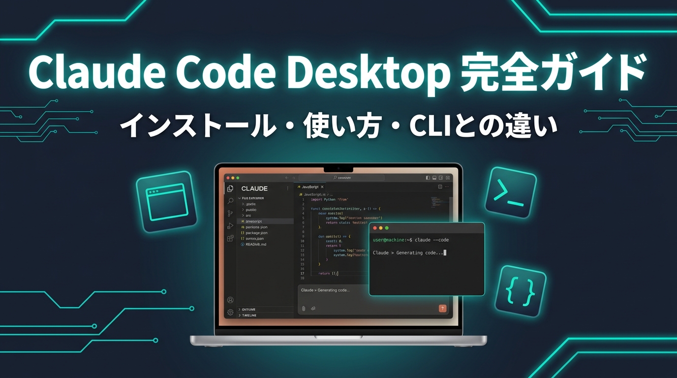 テキトー教師この記事では、Claude Code Desktopとは何か、インストールから基本的な使い方、CLIとの違い、MCP連携まで全部カバーします。前回の「Claude Code CLI完全ガイド」に続く内容ですが、Desktop単体でも完結して読めるようにしています。