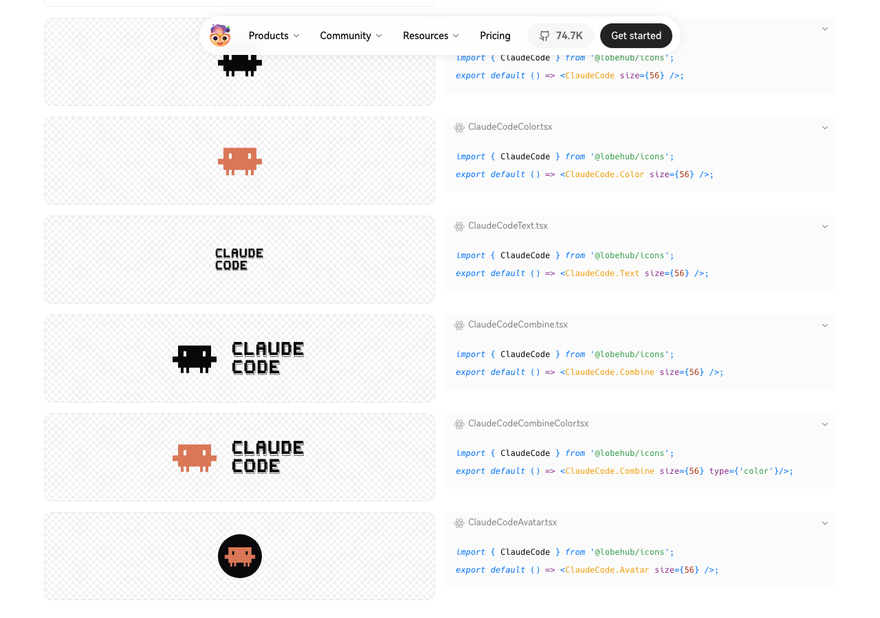 LobeHubというアイコンライブラリにも「Claude Code Application Logos」として正式に収録されています。