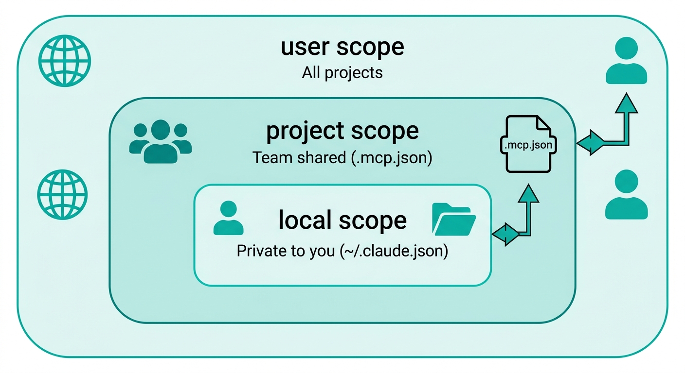 テキトー教師- スコープを正しく選ぶ: チーム共有はproject(.mcp.json)、個人設定はlocal/user、APIキーはgitに上げない