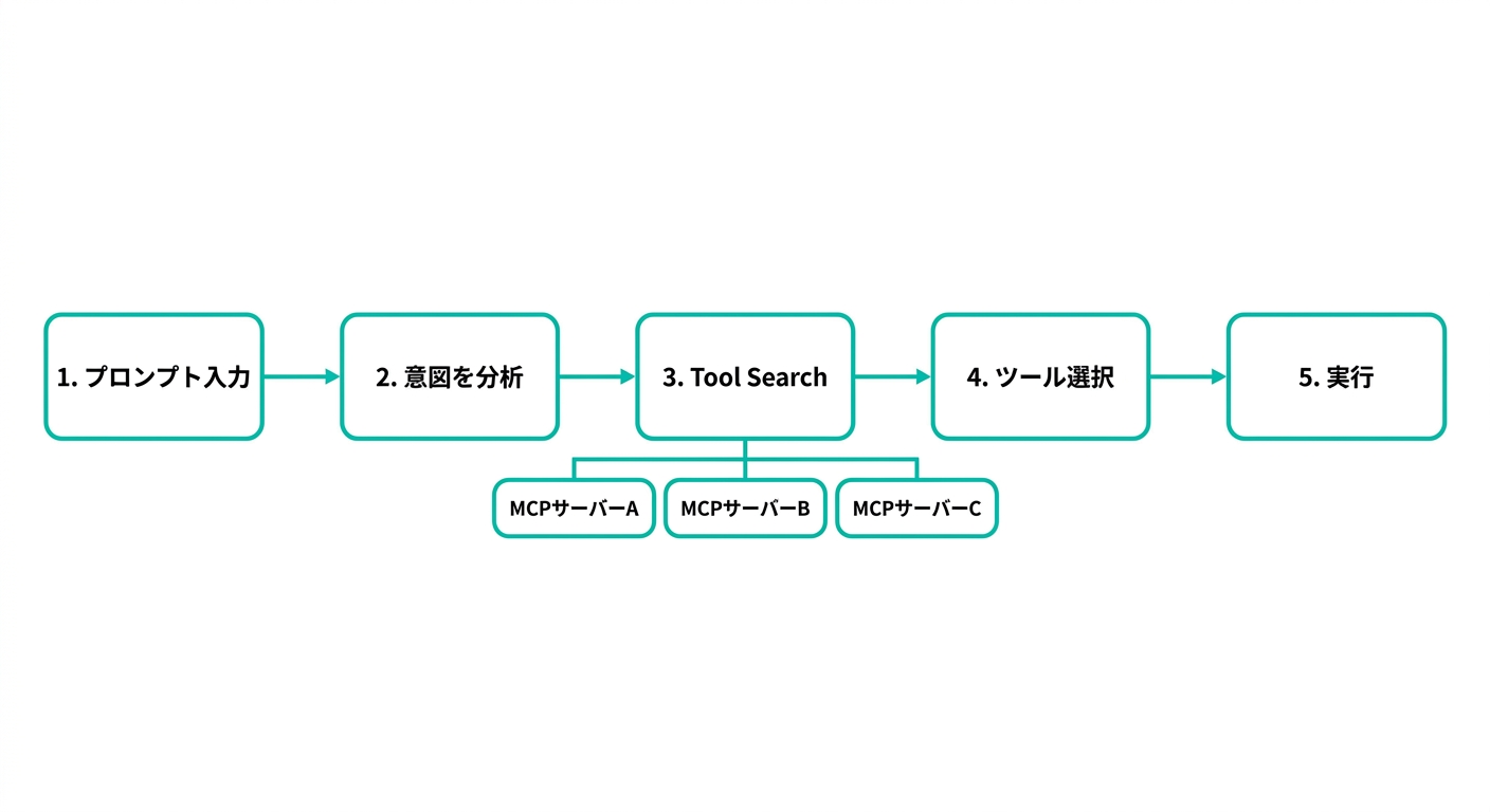 - Claudeが必要なタイミングで検索して該当ツールだけコンテキストに入れる